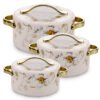 Nayasa Stainless Steel Bethany Casserole Set of 3, Small (1000ml, 1500ml, 2000ml), White