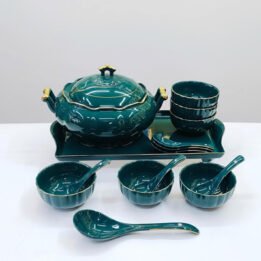 15pc Premium Ceramic Pudding & Dessert Bowl Set | Imported (Germany) | Green
