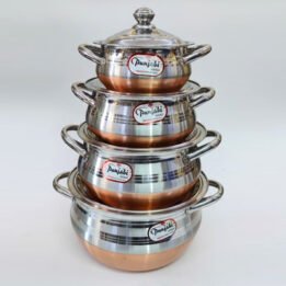 4pc Stainless Steel Copper Base Handi Set with Lid | Punjabi Dish Set